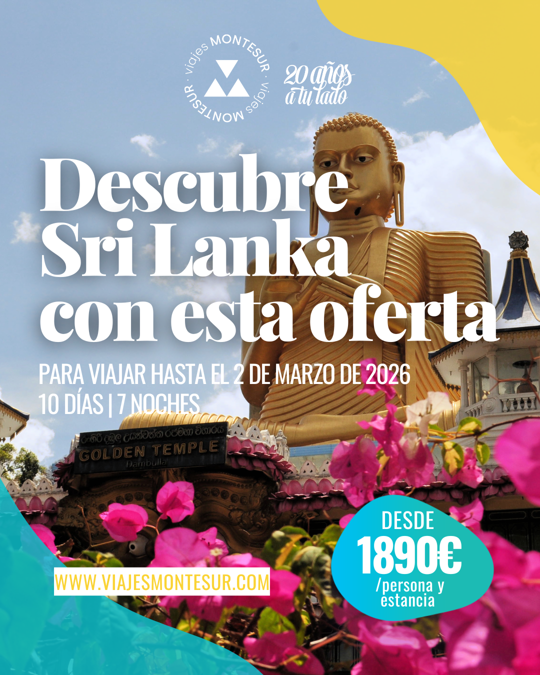El viaje a Sri Lanka Perla del Índico propone un recorrido organizado por algunos de los lugares más representativos del país, combinando patrimonio cultural, naturaleza y experiencias panorámicas. El programa incluye siete noches de estancia en hoteles previstos o similares, en régimen de media pensión, además de vuelos internacionales, traslados y visitas según itinerario. La ruta contempla estancias en Colombo, Dambulla, Polonnaruwa, Kandy, Nuwara Eliya, Yala y Bentota, con categoría hotelera a elección del cliente.