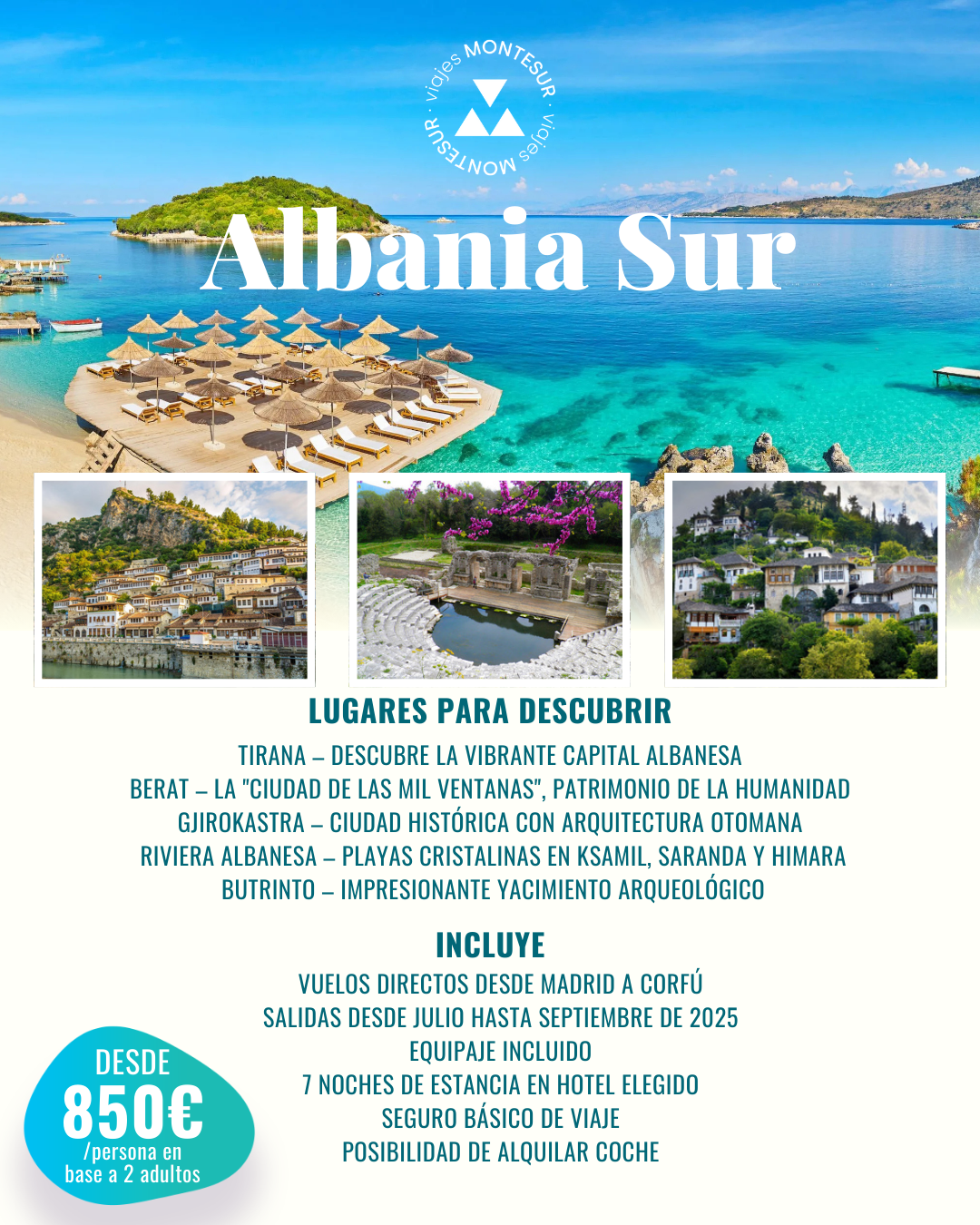 Descubre la belleza del sur de Albania con nuestro exclusivo paquete de 8 días y 7 noches con salida desde Madrid. Con plazas garantizadas, este viaje te ofrece vuelos directos a Corfú y una travesía en ferry para explorar las maravillas de Sarandë y sus alrededores.